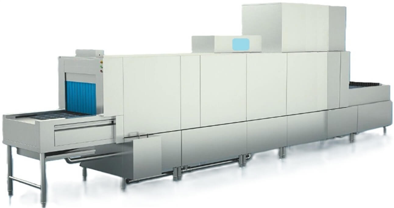 这机型系统专为烤盘﹑调理盆﹑桶和盖子等容器而设计。这机型最终高温喷淋得干净热水被回收再利用,这大大减少了水的消耗。