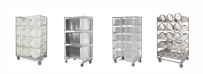 专业不锈钢制造: 所有清洗架均采用全不锈钢材质制成,经久耐用,专为容纳烘焙和食品加工行业常见的各种容器而设计。